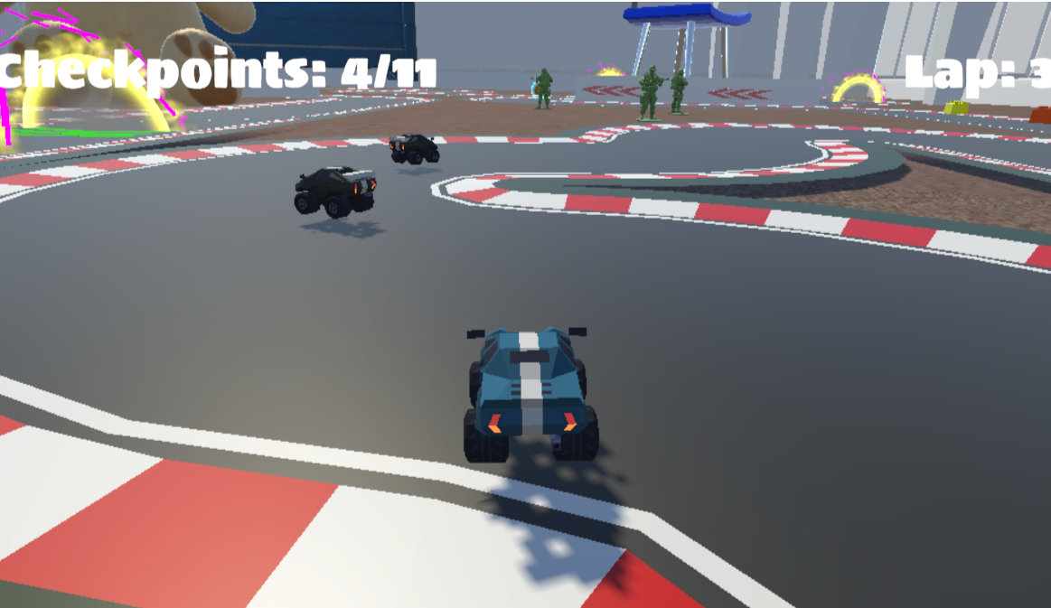 • Power ups, checkpoints, and lap counting